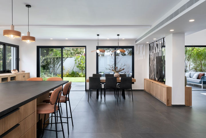 השיפוץ כלל תכנון מאוד מורכב של הרחבה והגדלת הבית בשני קומות ושדרוג הבית כולו בצורה יסודית תוך כדי הכנסת מערכת מיזוג מסובכת, חשמל חכם, חימום תת רצפתי, מערכת צלונים נכנסים לכיס (אתגר בשיפוץ) ועוד.